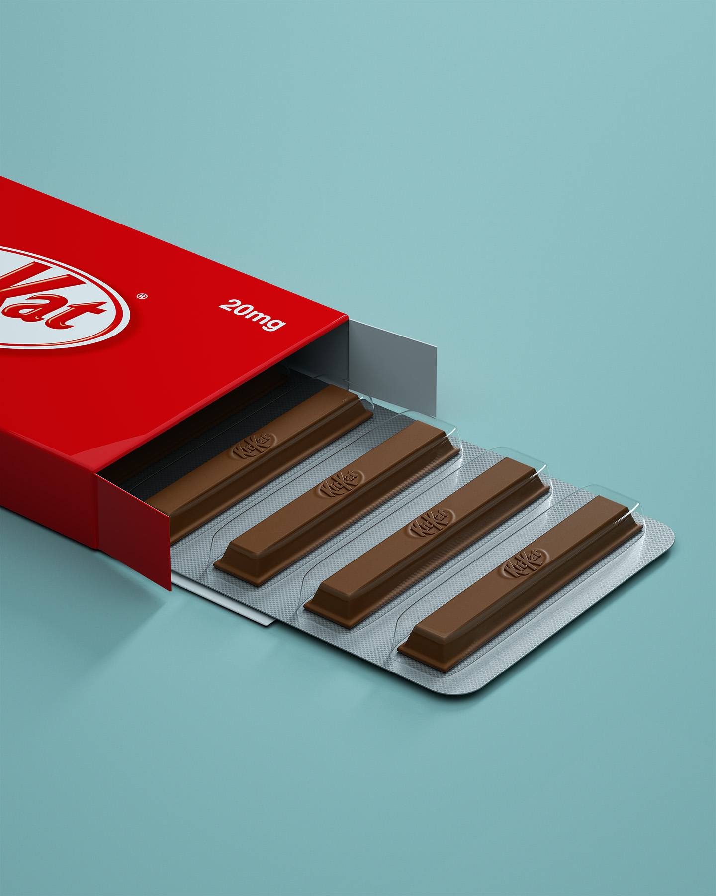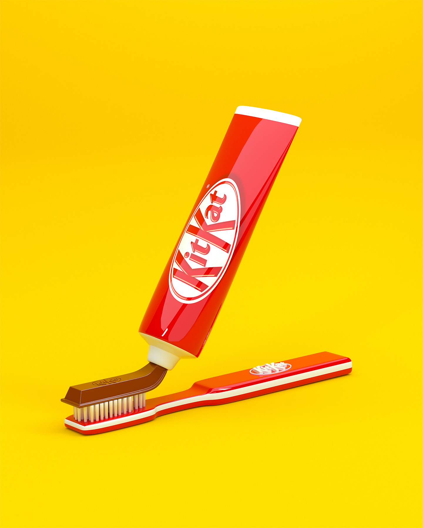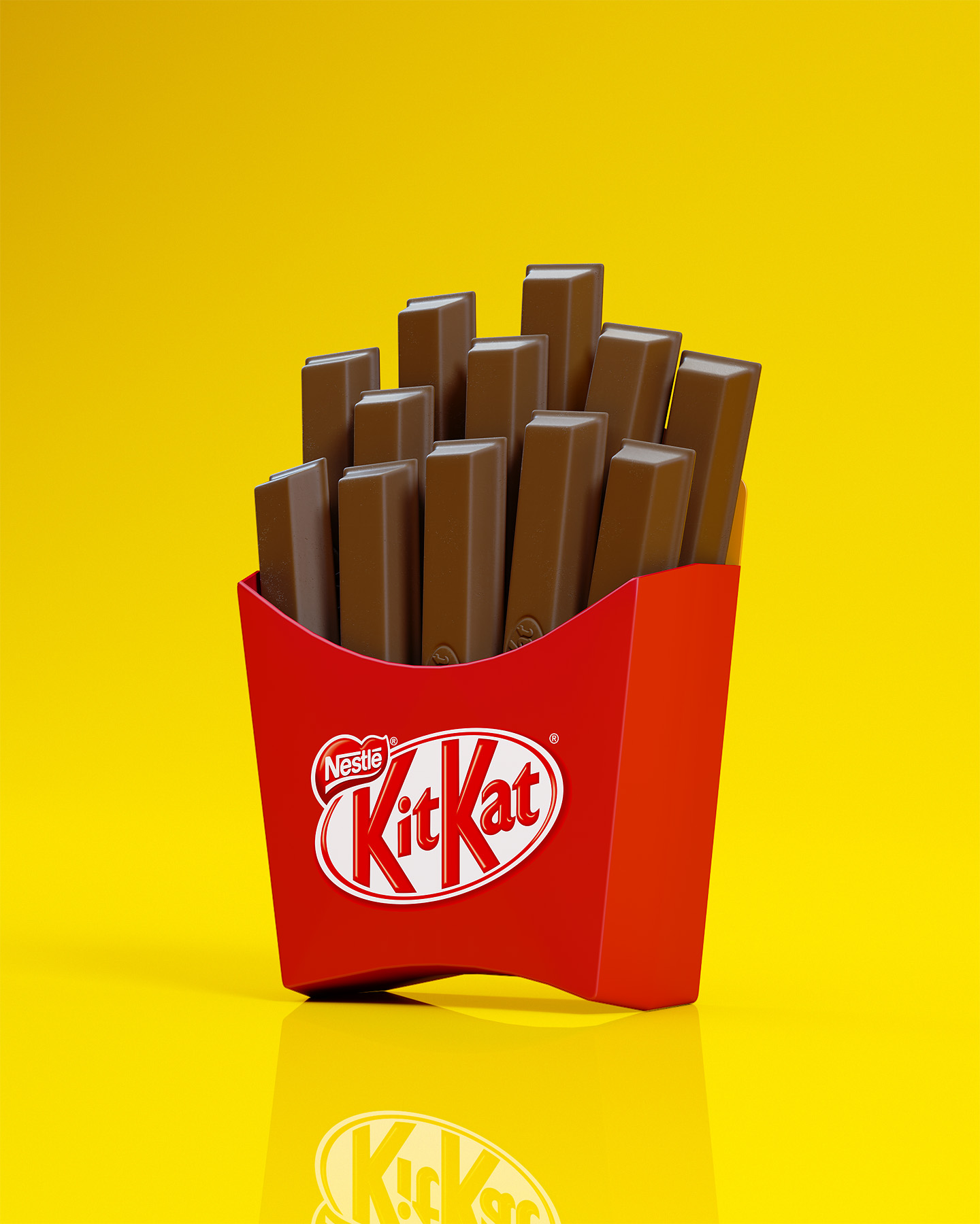 This personal project explores playful 3D interpretations of the iconic KitKat bar.